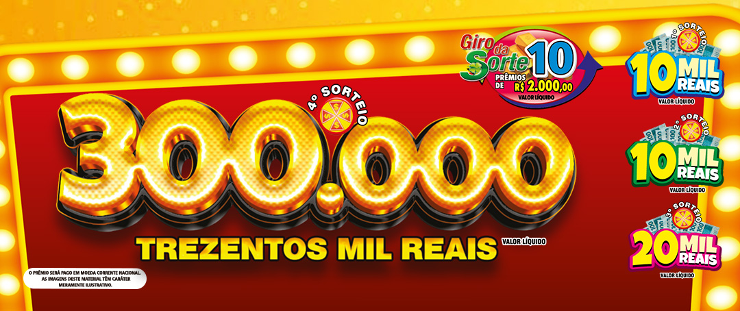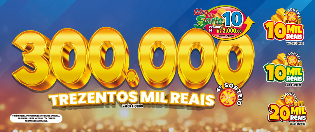 10 PRÊMIOS DE R$ 2.000,00 (cada) - Valor líquido
